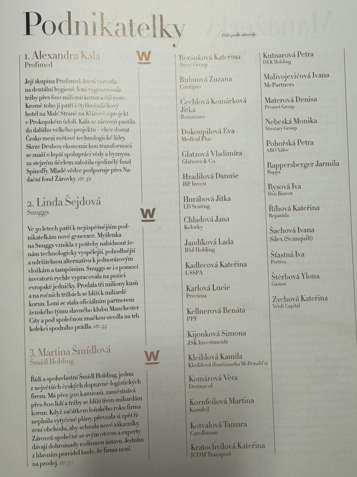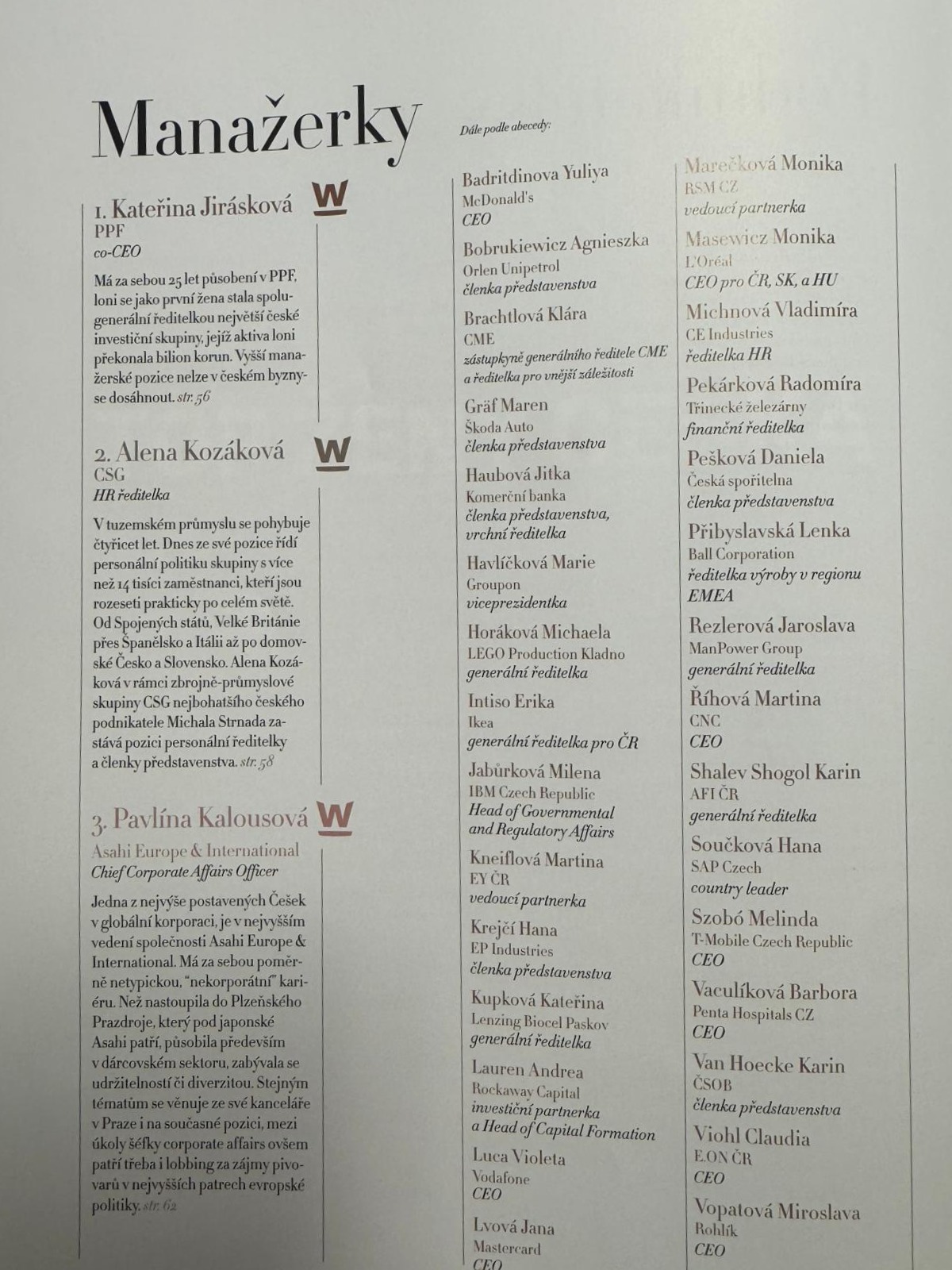 Letos do ní vstoupily investorka a filantropka Silke Horáková, dlouholetá členka představenstva ČEZ Michaela Chaloupková a modelka a zakladatelka nadace Tereza Maxová, jejíž charitativní organizace letos slaví 30 let existence.